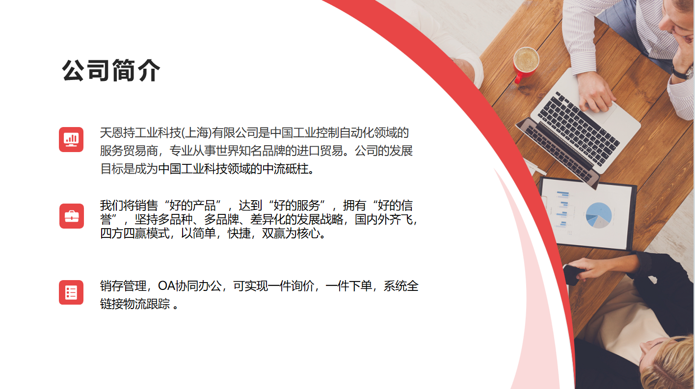 天恩持工業(yè)科技(上海)有限公司專業(yè)從事世界知名品牌機械配件、自動化控制、氣動元件、儀器儀表、工控產品的進口貿易。