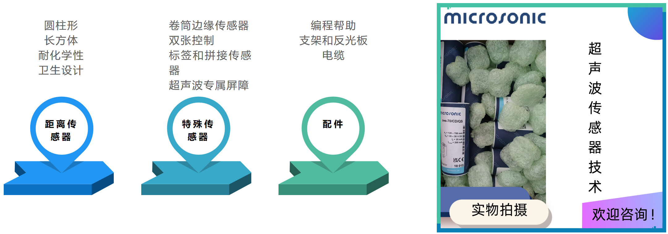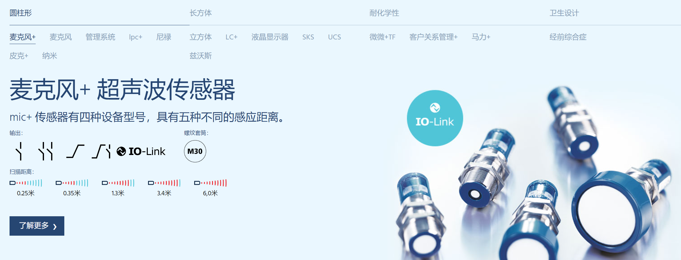 數(shù)字顯示,直接測量值輸出(mm/cm 或 %);IO-Link接口 支持新的行業(yè)標準;通過數(shù)字;顯示器對傳感器進行數(shù)字調(diào)節(jié),可以對傳感器進行完全預(yù)設(shè);自動同步和多重操作,可在狹小的空間內(nèi)同時操作多達十個傳感器;UL 認證 符合加拿大和美國安全標準。多達十個傳感器也可以在具有不同感應(yīng)距離的傳感器的混合配置中自動工作。然后,具有最大掃描距離的傳感器確定測量重復率。如果傳感器通過 M12 圓形連接器的引腳 5 相互電氣連接,則同步處于活動狀態(tài)。在同步操作中,所有傳感器完全相同的時間進行測量。如果傳感器之間的安裝距離相應(yīng)較近,則傳感器還可以接收來自相鄰傳感器的回波信號。這可以有利地使用,例如B.擴大傳感器的檢測范圍。